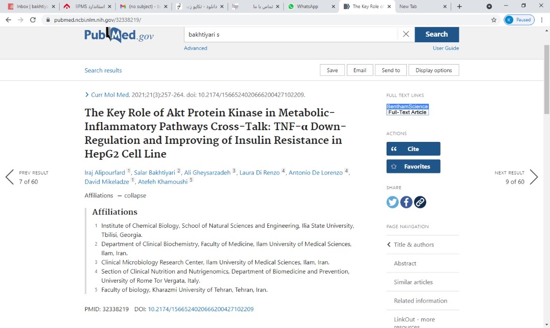 پایان نامه هایی که با راهنمایی دکتر سالار بختیاری در گروه بیوشیمی بالینی در حال انجام هستند: